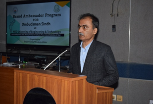 Mr. Muhammad Sohail Rajput, Honourable Provincial Ombudsman Sindh to select ten students of NED University as Brand Ambassadors of Provincial Ombudsman Sindh. The students will be given task to disseminate information about the role and functions of the Ombudsman among the students and the public at large.